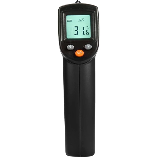 Mit dem Infrarot Thermometer 90340 von Cozze lässt sich schnell und einfach die Temperatur des Pizzasteins messen, um beste Backergebnisse zu erzielen. Es wird empfohlen, Pizzen bei einer Oberflächentemperatur zwischen 350°C und 400°C zu backen. Die Digitalanzeige kann Temperaturen bis zu 530°C in Celsius und Fahrenheit anzeigen. Einer der vielen Vorteile von Infrarot-Thermometern ist, dass Sie die Messung nicht beeinflussen, da der gesamte Prozess digital und berührungslos ist. Sie hinterlassen keine Spuren und liefern einen schnellen Hinweis auf die Temperatur, die auch auf unebenen Oberflächen gemessen werden kann, die oft mit Lebensmitteln in Verbindung gebracht werden. In der praktischen Tasche lässt sich das Thermometer anschließend sicher verstauen.