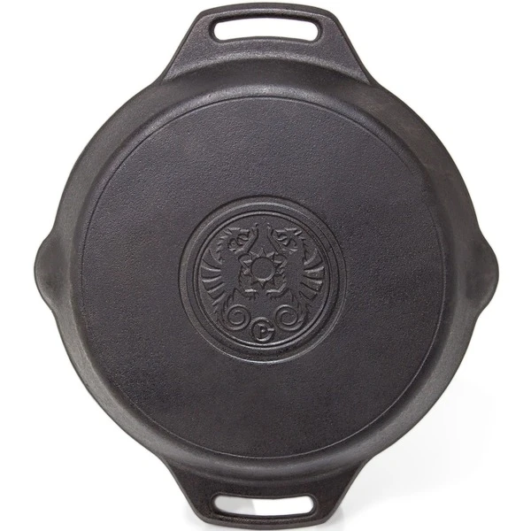 Die gusseiserne Petromax Feuerpfanne fp35h gehört mit ihrer exzellenten Wärmespeicherung zur Ausstattung jeder Küche. Ob in der Draußen-Küche über dem offenen Feuer gekocht wird oder auf dem Herd zuhause, man kann die Feuerpfanne sowohl auf herkömmlichen Herdplatten, auf Gasflammen, im Backofen als auch im Freien auf einer Kochstelle, über einem Lagerfeuer oder auf einem passenden Grill verwenden. Das Gusseisen mit seiner ausgezeichneten Wärmeverteilung und -speicherung ist dank der vorbehandelten Oberfläche (seasoned finish) sofort einsatzbereit und leicht zu pflegen.Art.-Nr.: 1532894