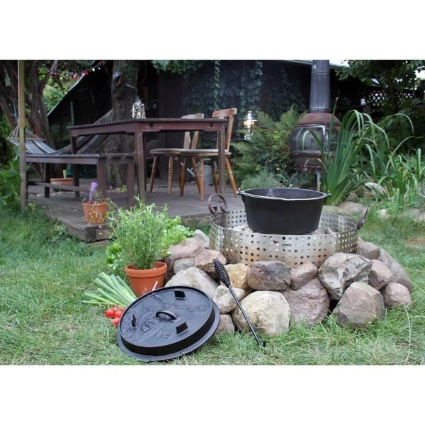 Der Feuertopf ft9 von Petromax eignet sich für 8 – 14 Personen. Die Petromax Feuertöpfe, auch als Dutch Oven bezeichnet, sind ideale Begleiter für Draußen-Aktivitäten wie Reisen, Camping, etc. Mit ihnen garen Speisen, wie z.B. Fleisch und Gemüse, sehr schonend im eigenen Saft über offenem Feuer oder im heimischen Backofen. Der einzigartige Geschmack entsteht durch die konstante Rundumwärme im Topf. Die Deckel der Feuertöpfe können zudem auf Wunsch als Servierplatte oder Pfanne genutzt werden. Dank der vorbehandelten Oberfläche (seasoned finished) ist der robuste Petromax Feuertopf aus Gusseisen sofort verwendbar. Mit den Petromax Feuertöpfen kann man draußen leckeres und gesundes Essen für Familie und Freunde zubereiten.Art.-Nr.: 1532709