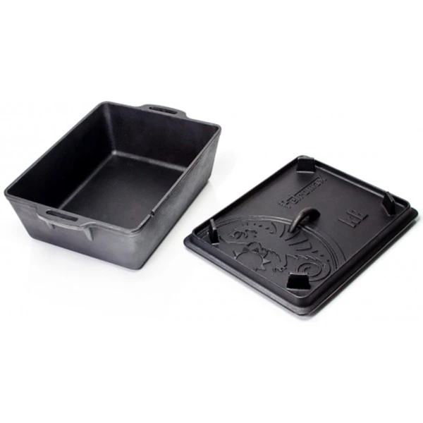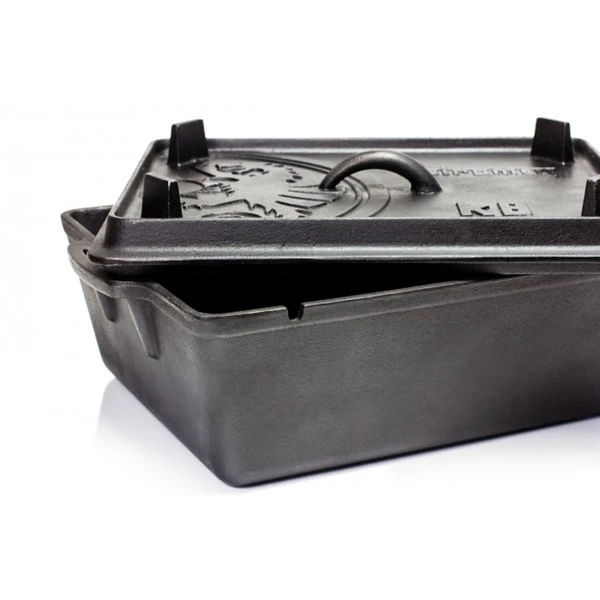 Die Petromax Kastenform k8 ist perfekt für Brot, Kuchen, Auflauf und ähnliches geeignet. Der Deckel der gusseisernen Formen lässt sich beim Draußen-Kochen mit Glut oder Briketts bestücken, so dass eine hervorragende Rundumwärme entsteht, wie bei einem Feuertopf. Außerdem kann der Deckel mit Füßen und Rillenprofil umgedreht perfekt als Steak- und Grillpfanne draußen verwendet werden. Im Backofen funktioniert die Guss-Kastenform als Bräter oder für leckeren Nachtisch.Art.-Nr.: 1532787