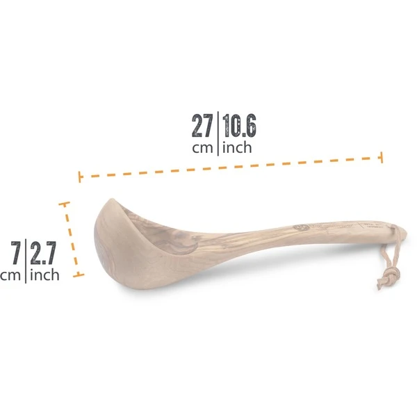 Die Petromax Kelle aus Olivenholz eignet sich als Servierbesteck für Suppen und Eintöpfe, zum Umfüllen oder Probieren des Essens am Lagerfeuer. Auch zum Abmessen ist sie nutzbar. Die Olivenholz-Kelle mit 60ml Fassungsvermögen ist lange haltbar dank Öl-Wachs-Finish und natürlich lebensmittelecht. Mit dem praktischen Lederriemen kann sie am Gürtel oder Rucksack befestigt werden. Art.-Nr.: 1862192